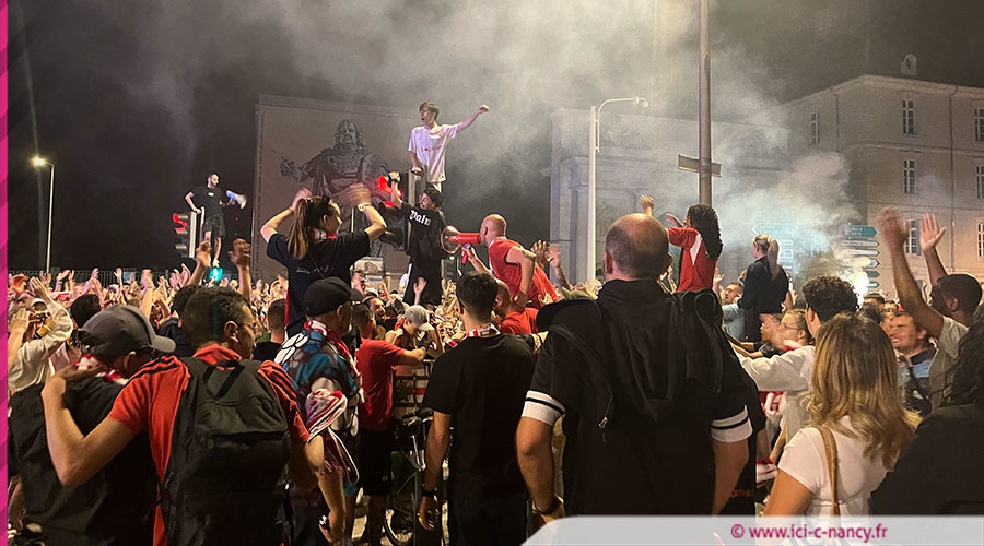 Au coup de sifflet final, les joueurs et le staff exultaient dans un stade Marcel Picot en ébullition. La fête s'est évidemment poursuivie sur la place Stanislas où plusieurs milliers de supporters de l'ASNL ont convergé en cortège depuis la porte Sainte-Catherine. Chants, pétards, fumigènes, la place Stanislas s'est embrasé pour fêter le retour de Nancy à l'étage supérieur, tellement mérité pour une ville de football comme Nancy, les supporters nancéiens l'ont prouvé toute la saison...