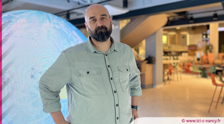 Julien Coquet, Directeur d'exploitation du Palais devant le globe géant / photo ici-c-nancy.fr