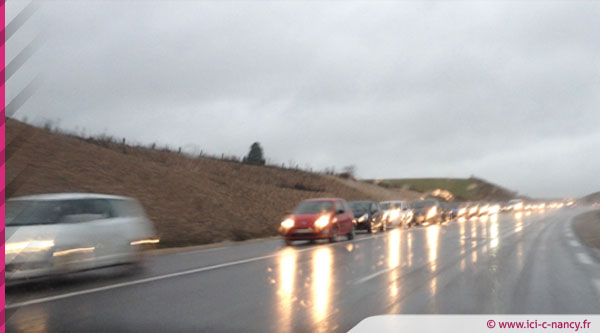 Conséquence un ralentissement de 12 km est signalé sur l'A31 entre les PR 282 et 270 de Bouxières-sous-Froidmont à Dieulouard.