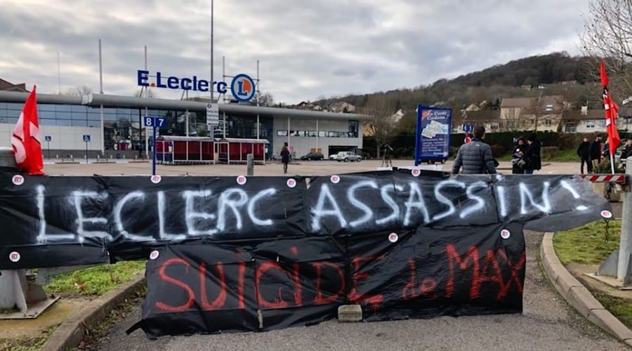 Sur la barrière de l’hypermarché fermé aujourd’hui, une délégation FO a accroché une banderole noire sur laquelle on pouvait lire « Leclerc assassin ». Au sol, des bougies et de nombreuses fleurs ont été déposées dans la matinée.