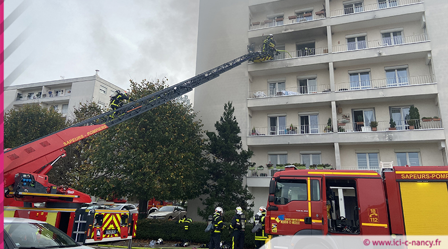 De larges panaches de fumée s'échappant de l'édifice et visibles au loin. Les sapeurs-pompiers du SDIS 54 ont été alertés peu avant 13h ce samedi d'un violent incendie dans l’immeuble les Chenevières, rue du Général de Gaulle. Trente-deux personnes ont été prises en charge dont deux pompiers par les secours. Une femme en arrêt cardiaque, a été extraite de son appartement et prise en charge. Elle est décédée malgré des tentatives de réanimation par le personnel du SMUR 54.