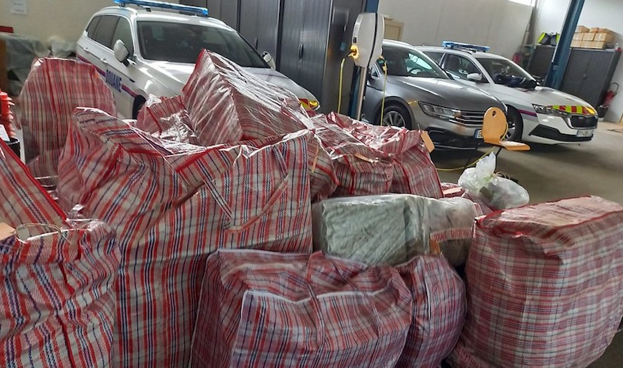 Après dépotage complet du camion, les douaniers découvrent 376,1 kg d'herbe de cannabis et 1,1 kg de résine de cannabis pour une valeur supérieure à 3,76 millions d'euros sur le marché de la revente illicite.