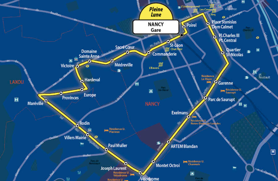 En attendant, le réseau Stan poursuit ce jeudi 5 septembre la mise en place de son réseau en lançant son premier service « Pleine Lune » pour les noctambules. Une ligne accessible les jeudis, vendredis et samedis soir depuis le centre de Nancy. L’itinéraire dessert les quartiers de résidences étudiantes de Laxou (Médreville), Vandœuvre-lès-Nancy et de Villers-lès-Nancy à 1h30, 2h30, 3h30 et 4h30.