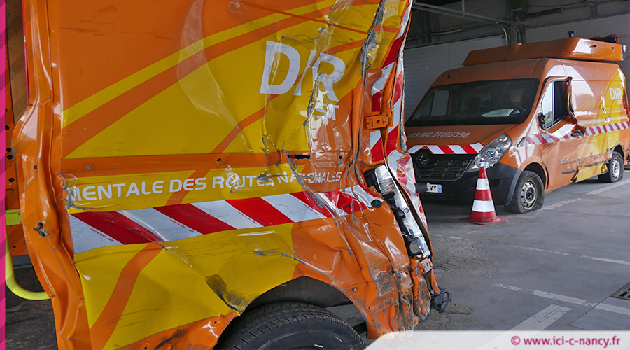 Chaque jour, au bord des routes, les personnels de la DIR Est sont confrontés à des incivilités lors de chantiers ou d’interventions sur le réseau routier ou pire à des comportements à haut risque de conducteurs mettant parfois en péril leur vie. Une nouvelle campagne de communication vise à sensibiliser les usagers de la route en diffusant des témoignages d'agents des DIR chargés d'une mission d’utilité publique, de protection, mise en sécurité des usagers de la route. "Vous me balancez les pires insultes... Vous me foncez dessus... Vous me faites un doigt d’honneur, c’est comme ça que vous me dites merci ?", interrogent les affiches assorties de portraits de femmes et hommes employés par la DIR Est. Une campagne qui s'illustre aussi par des images d'engins d'intervention détruits lors de collisions sur les axes routiers. Au centre d'exploitation et d'intervention de la DIR Est Fléville, deux engins d'intervention stationnés dans un entrepôt portent encore les stigmates d'accidents graves suite à des collisions par des camions, l'un sur l'A31 lors de la nuit de mardi 10 à mercredi 11 mai et l'autre sur la RN57 dans le sens Nancy/Epinal à hauteur de la commune de Bayon le 16 mai 2022.