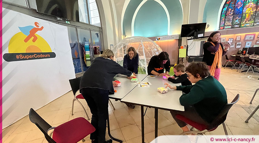 Créer des motifs avec des 0 ou des 1, établir un cheminement par des briques de couleurs... Le FabLab Les MacGyver, laboratoire de fabrication numérique inclusif, inauguré il y a 5 ans de l'association JB Thiery à Maxéville a accueilli les 22 et 26 novembre une édition très spéciale du programme "SuperCodeurs de Orange". Des sessions proposées à 80 jeunes de 6 à 20 ans, porteurs de déficience intellectuelle, polyhandicap, de troubles du Spectre Autistique (TSA) ou de Trouble Neuro-Développementaux (TND).