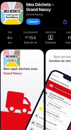 Autre nouveauté mise à disposition des habitants : l’application mobile « Mes Déchets », également appelée « Mes Déchets Grand Nancy », facilite la gestion quotidienne des déchets ménagers. Personnalisée selon l’adresse de l’utilisateur, elle permet notamment :
