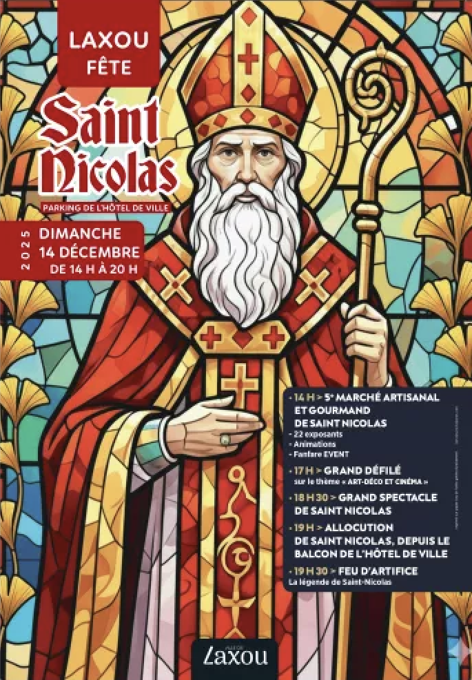 Le défilé de la Saint-Nicolas composé de neuf chars s’élancera depuis le 3 av. Paul Déroulède dans les rues de Laxou de 17h à 19h, illuminant le parcours de couleurs et de musiques. À 19h, Saint-Nicolas recevra les clés de la ville des mains de M. le Maire depuis le balcon de l’Hôtel de Ville, suivi par un dernier concert de la fanfare à 19h15. La soirée se clôturera à 19h30 par un feu d’artifice spectaculaire, mettant pour la première fois en scène la Légende de Saint-Nicolas, pour émerveiller toute la famille.