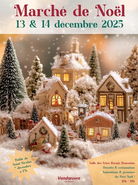 Un marché artisanal se tiendra les 13 et 14 décembre à la salle des fêtes Bernie BONVOISIN, Allée de Champagne, Vandœuvre-lès-Nancy, France.