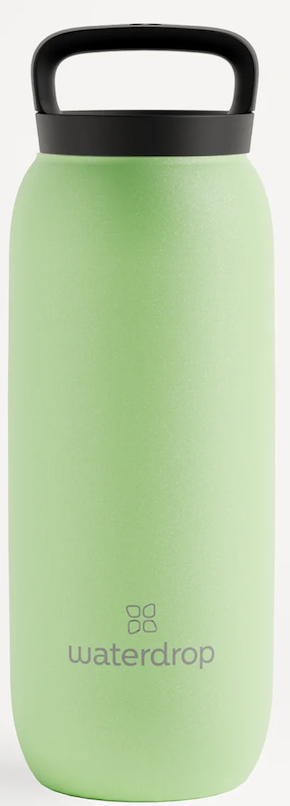 Parmi les nombreuses gourdes, nous avons testé la Gourde Thermo 600 ml de Waterdrop avec son couvercle à poignée. Elle promet une boisson qui reste fraiche pendant 24 heures et chaude pendant 6 heures.