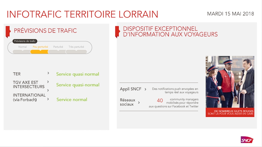 À l'issue du neuvième épisode de grève contre la réforme ferroviaire, La SNCF prévoit un "retour progressif à la normale" du trafic ce mardi 15 mai. Toutefois "quelques légères perturbations sur la pointe du matin sont à prévoir dans les Vosges", précise la SNCF.