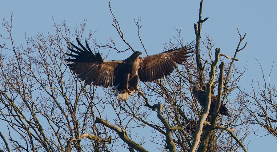 Appelé également "aigle de mer", le pygargue à queue blanche est l’un des plus grands aigles d’Europe. Ce rapace majestueux est l'un des cousins du pygargue à tête blanche, (emblème des États-Unis). Avec une envergure qui peut atteindre 2,6 mètres, les pygargues à queue blanche, sont rares en France puisque seulement 7 à 8 couples nicheurs sont recensés à ce jour.