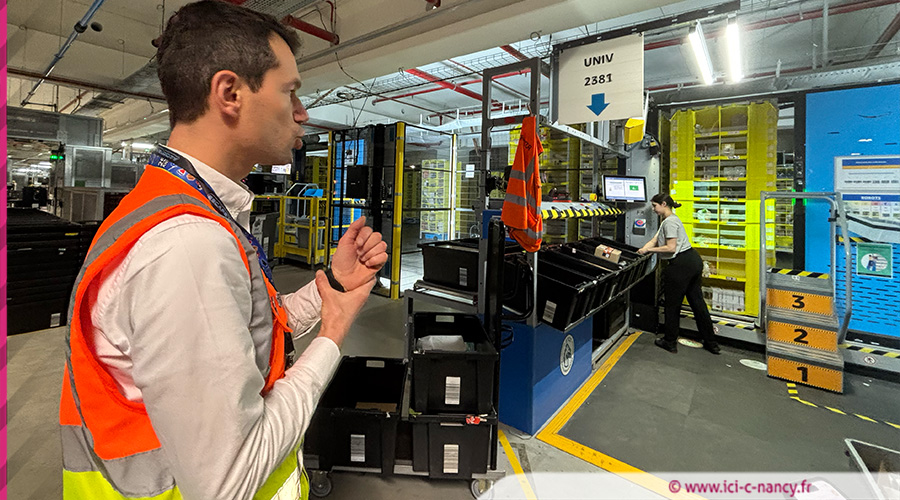Derrière les murs de cet entrepôt géant, les chiffres peuvent donner le vertige, près de 30 millions d’articles peuvent être stockés simultanément. Parmi lesquels « 6 articles sur 10 » traités proviennent de vendeurs partenaires, principalement des PME et TPE françaises. Pour pouvoir assurer les réceptions et les livraisons avec des délais les plus courts, le site d’Augny peut compter sur son importante part de robotisation avec la présence de plusieurs milliers de robots mobiles. Cela se traduit par des stations de tri automatisées, des palettiseurs robotisés ou encore des systèmes de transport de bacs qui réduisent le port de charges lourdes.