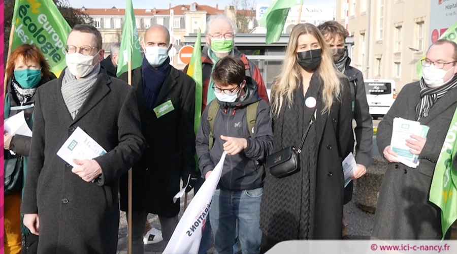 Les écologistes veulent mobiliser les électeurs à la faveur de la candidature à l'élection présidentielle de 2022 de Yannick Jadot. Le comité de soutien au candidat de Europe Écologie-Les Verts (EELV) s'est rassemblé aujourd'hui à l'entrée des urgences de Nancy pour alerter sur la place de l'hopital public et les défis à venir.