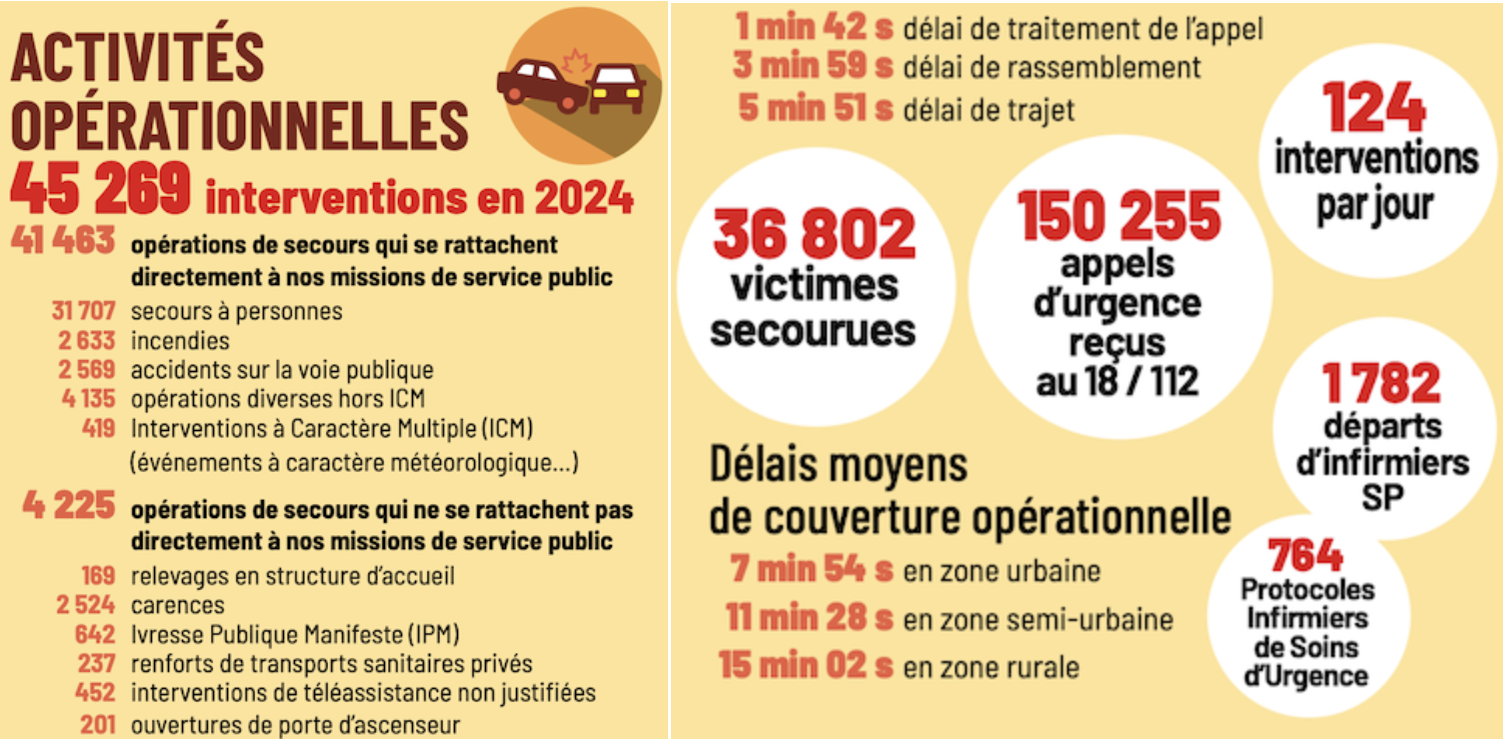 Autres chiffres significatifs de ce bilan opérationnel, le centre d’appels d’urgence 18/112, opérationnel 24h/24, a enregistré en 2024 une hausse de 15 % des appels.