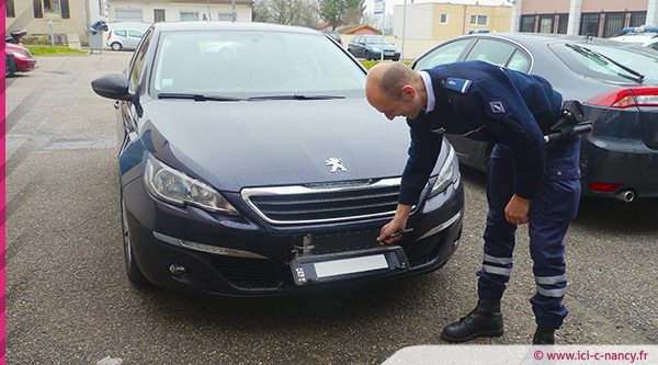 Depuis une semaine, les policiers du détachement autoroutier de Champigneulles de la CRS 39 ont eu l'occasion d'apprivoiser un nouvel outil, le même que leurs confrères gendarmes de l’Escadron départemental de sécurité routière (EDSR) à savoir un véhicule banalisé doté d’un radar embarqué. La différence réside à un détail, il ne s’agit pas d’un berlingo Citroen, mais d’une berline 308 Peugeot, 5 portes à la couleur bleu sombre se fondant avec aisance dans la circulation. Son efficacité réside par la discrétion de son radar caché sous la plaque d’immatriculation avant, il est ensuite relié à une tablette numérique ainsi qu’à un boîtier électronique dans le coffre. En cas de dépassement de vitesse, un flash infrarouge est émis et enregistre cinq images du véhicule diffusées automatiquement sur la tablette numérique. En fin de journée, les photos sont ensuite téléchargées et transmises au Centre Automatisé de Constatation des Infractions Routières (CACIR) de Rennes. Quelques jours plus tard, l’automobiliste reçoit un courrier avec les détails et le montant de l’infraction.