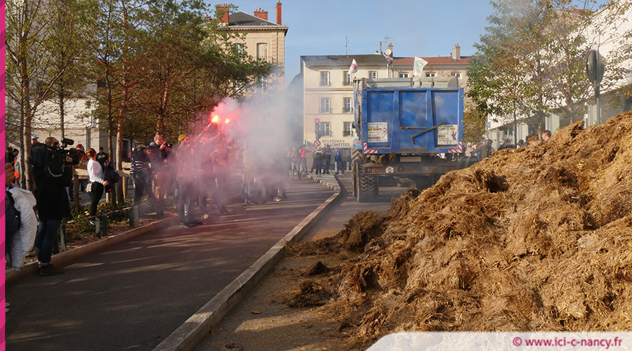 En colère et décidés à se faire entendre, les agriculteurs se sont réunis à partir de 10h30 au niveau du stade Marcel Picot, puis les cortèges de tracteurs sont entrés progressivement dans l’agglomération nancéienne. Vers 15h30, ils ont notamment déversé à Nancy une benne de purin et de la paille à l'entrée de la place Simone Veil.
