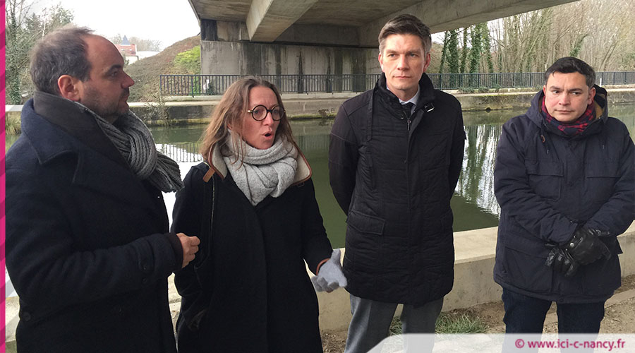 Après la permanence mobile, le point presse mobile. Mathieu Klein a invité jeudi la presse locale à un petit tour de l’est nancéien afin d’exposer sa vision de ce secteur de la cité ducale où se dressent plusieurs sites industriels et coule la Meurthe et le canal de la Marne au Rhin. Et le ton a été donné dès le début « nous ne voulons plus ça » a lancé Matheu Klein en désignant les résidences à trois étages en construction face aux Grands Moulins le long de l’ancienne voie ferrée. Une architecture « d’investisseurs standardisée » que l’actuel président du conseil départemental ne souhaite plus voir apparaître sur la voie de la Meurthe préférant « des immeubles de petites tailles et des maisons. »