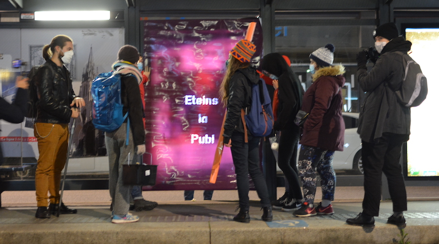Par cette action nocturne, les cinq associations demandent le respect de la législation actuelle, mais aussi l‘interdiction des écrans numériques (enseignes, vitrines et publicité) et des dispositifs d’éclairages d’affiches publicitaires dans l’espace public.