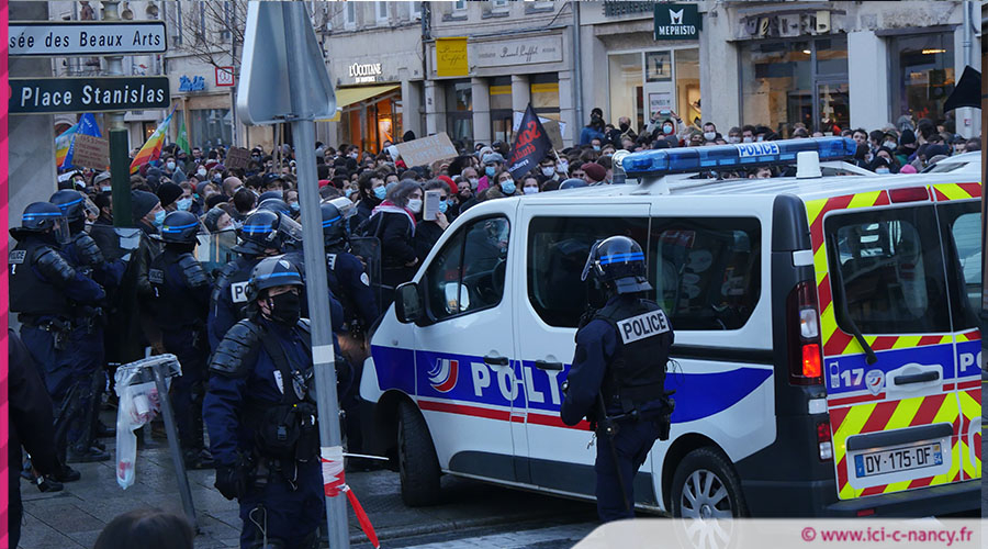 Samedi après-midi, des centaines de manifestants avaient répondu à l’appel de plusieurs partis de gauche, associations et syndicats d’un rassemblement place Maginot à Nancy pour exprimer leur refus de la loi de sécurité globale. Au bout d’une heure de rassemblement, des manifestants ont organisé un cortège surprise, ce qui n’avait pas été prévu avec les autorités. Un cortège qui a pris la direction de la rue Saint-Jean pour se diriger vers la place Stanislas, autour de laquelle le préfet avait pris un arrêté interdisant les manifestations.
