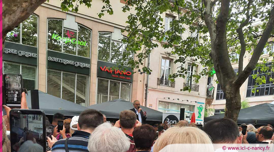 Finalement organisé place Maginot — à quelques encablures du centre vaccinal Prouvé et à proximité de l'Agence Régionale de Santé — l’évènement a accueilli plusieurs centaines (250 selon la police, 2 000 d'après le comptage des organisateurs) de sympathisants « antivax », anti-masques et corona-sceptiques venus écouter, quatre heures durant, un déluge de critiques sur les « dérives du système », le port du masque et notamment sur la vaccination contre la Covid-19 avec la dangerosité (supposée) du vaccin ARN.