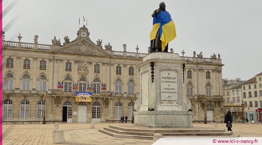 Tricot Couture Services, association d'insertion professionnelle, a manifesté son soutien au peuple ukrainien en réalisant le drapeau ukrainien qui recouvre les épaules de la statue de Stanislas. Elle n'a pas souhaité être rémunérée pour son service, mais a préféré que la valorisation financière du travail effectué, 180 €, soit reversée à la Croix Rouge en faveur de l'Ukraine.