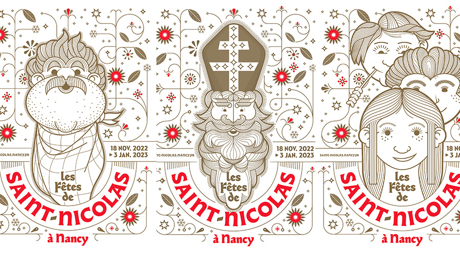 J-64 avant le grand week-end de Saint-Nicolas qui se déroulera cette année les 3 et 4 décembre 2022 à Nancy avec le traditionnel défilé dans les rues nancéiennes sur le thème "verre et lumière", la ville de Nancy a levé le voile sur la nouvelle identité visuelle des personnages de la légende. Le contrat avec le collectif de designers graphiques Schlep étant arrivé à son terme, la municipalité a lancé un nouvel appel d'offres au printemps 2022 en vue du renouvelement avec l'idée d'imaginer un nouveau dessin et un nouvel univers. "C'était un défi assez important à relever avec des contraintes (...) la proposition répond parfaitement à ces objectifs" s'est réjoui ce vendredi matin lors d'une conférence de presse Thomas Souverain, Adjoint délégué aux grands événements.