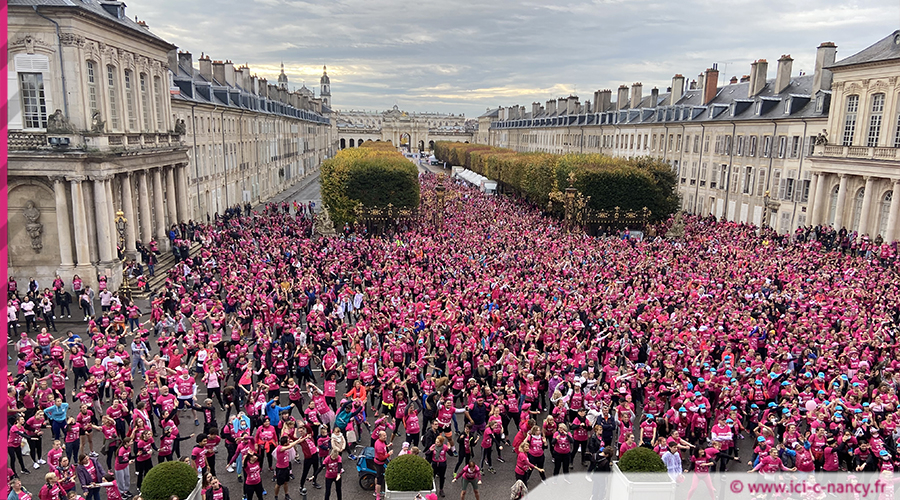 Après le top départ de la course, un peu avant 11h, qui n'était pas chronométrée, un long ruban rose a ensuite coloré les rues de Nancy pour un parcours de cinq kilomètres qui empruntait, entre autre, le secteur de la vieille-ville, la Grande Rue, rue de la Visitation, rue de Guise, les allées du parc de la Pépinière, rue Sainte Catherine, Place Stanislas pour une arrivée Place de la Carrière.