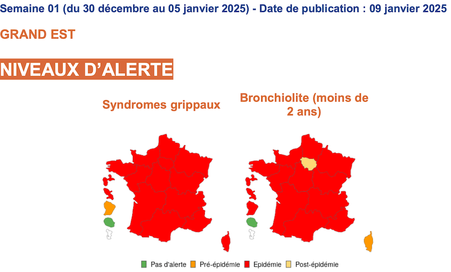 En outre, l’ARS Grand Est a instauré une cellule de crise territoriale pour coordonner les réponses sanitaires et renforcer la prise en charge, notamment en favorisant dans les établissements en tension des solutions alternatives comme l’oxygénothérapie et l’hospitalisation à domicile (HAD) pour réduire les hospitalisations.